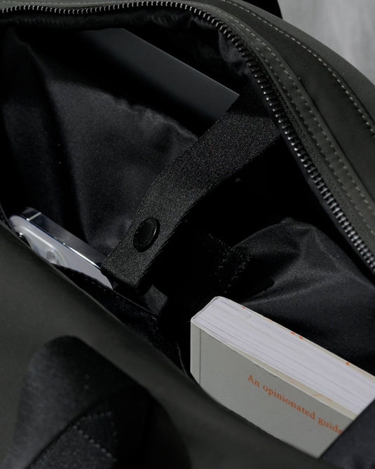 Inside, it fits 14” and 16” laptops, with an easy-access zip pocket for your phone or keys. Its expandable design adds flexibility, and the subtle trolley-handle strap makes it ideal for stacking on your suitcase. Smart, refined, and elevated for every kind of journey.